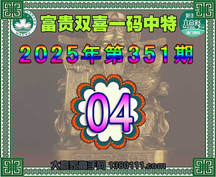 351期:【富贵双喜】 🥬一码中特🥬【04】开:04准