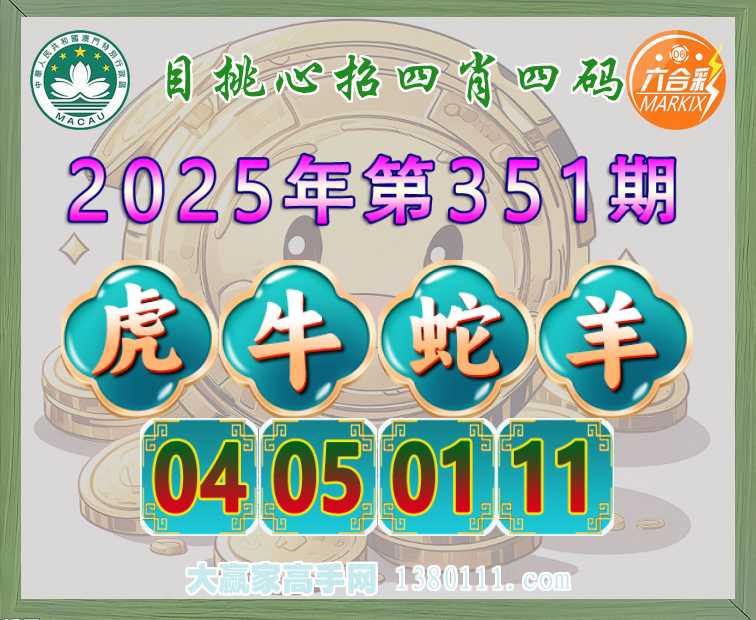 351期: 🍧『目挑心招』 🍧四肖四码🍧【虎牛蛇羊】【04.05.01.11】开:虎04准