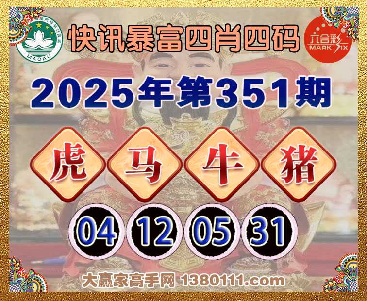 351期:〖快讯暴富〗 ♠️四肖四码♠️【虎马牛猪】【04.12.05.31】开:虎04准