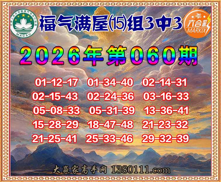 060期:『福气满屋』 👉⒂组3中3👉