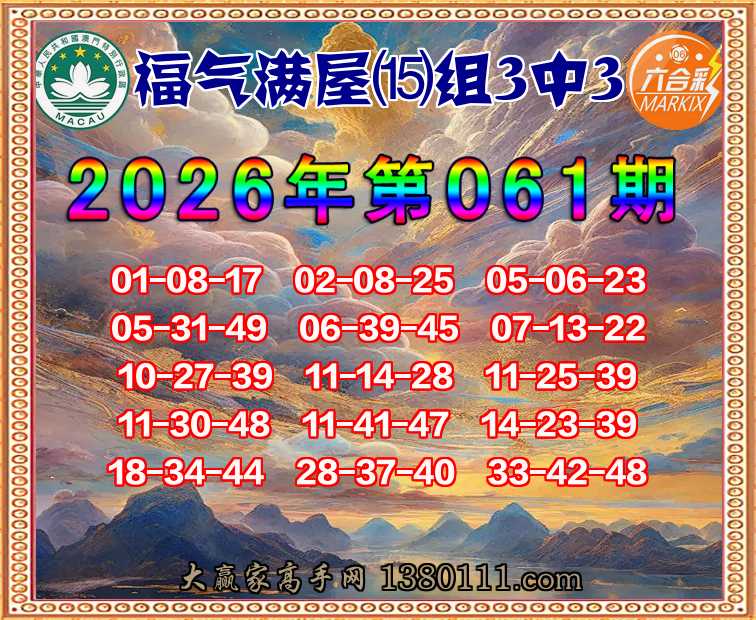 061期:『福气满屋』 👉⒂组3中3👉