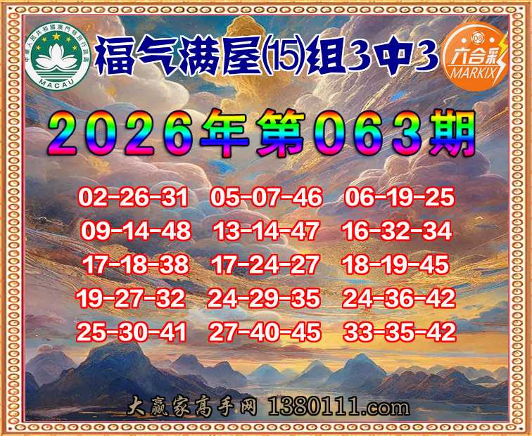 063期:『福气满屋』 👉⒂组3中3👉