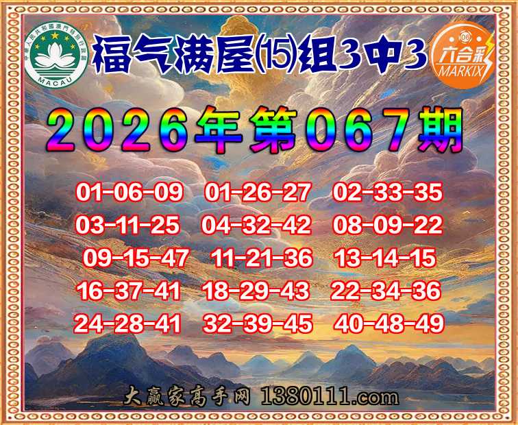 067期:『福气满屋』 👉⒂组3中3👉