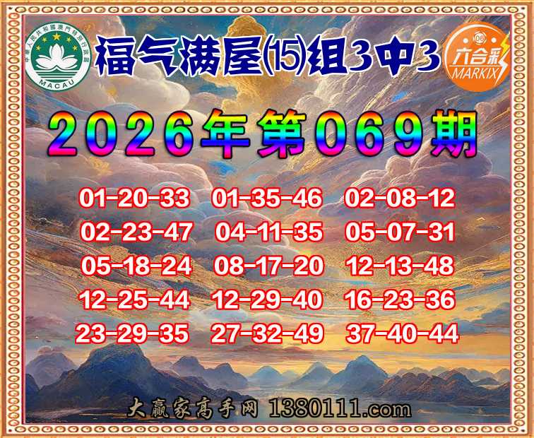 069期:『福气满屋』 👉⒂组3中3👉