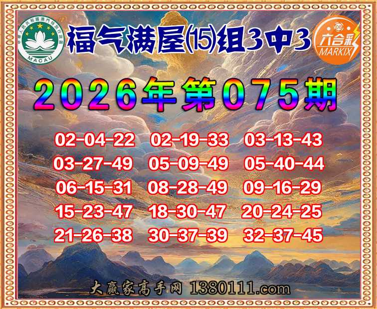 075期:『福气满屋』 👉⒂组3中3👉