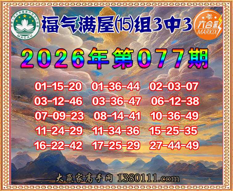 077期:『福气满屋』 👉⒂组3中3👉