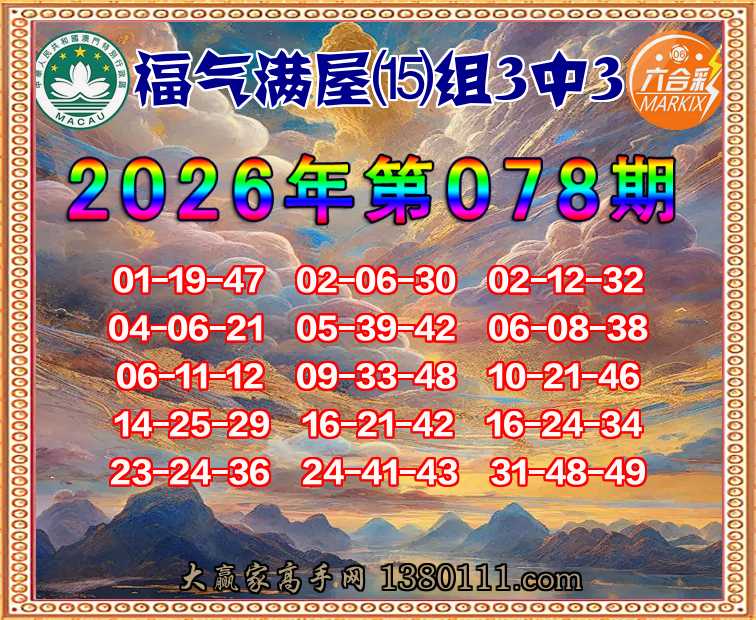 078期:『福气满屋』 👉⒂组3中3👉