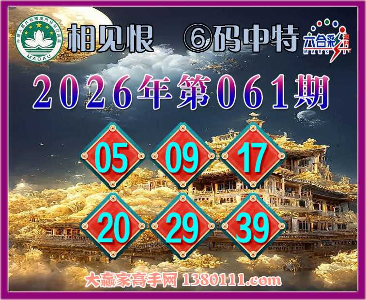 061期: 🪢『相见恨晩』 🪢⑥码中特🪢【05.09.17.20.29.39】开:29准