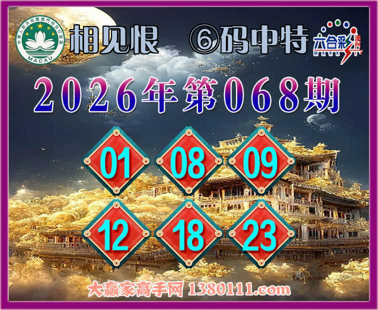 068期: 🪢『相见恨晩』 🪢⑥码中特🪢【01.08.09.12.18.23】开:23准