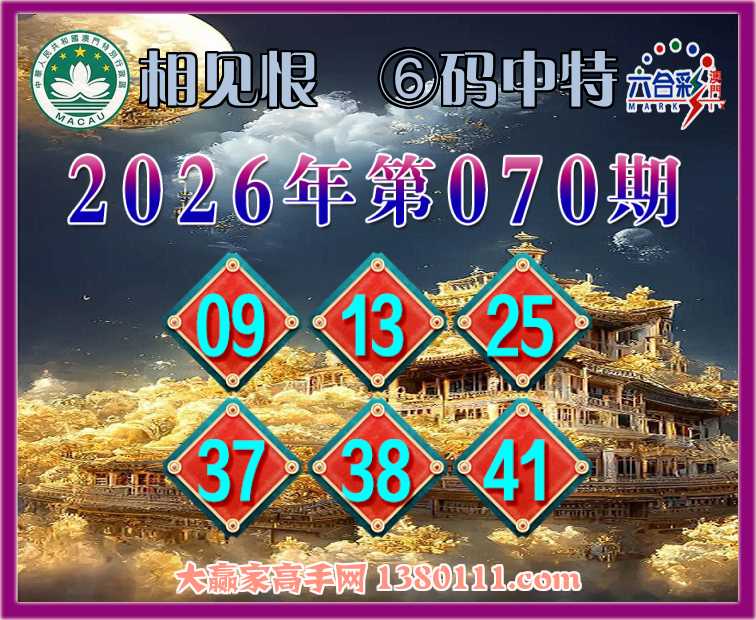070期: 🪢『相见恨晩』 🪢⑥码中特🪢【09.13.25.37.38.41】开:25准