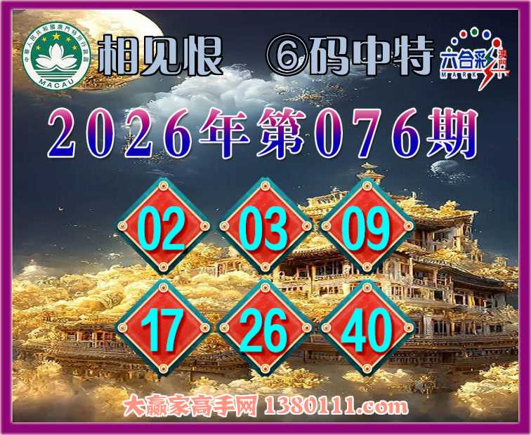 076期: 🪢『相见恨晩』 🪢⑥码中特🪢【02.03.09.17.26.40】开:02准